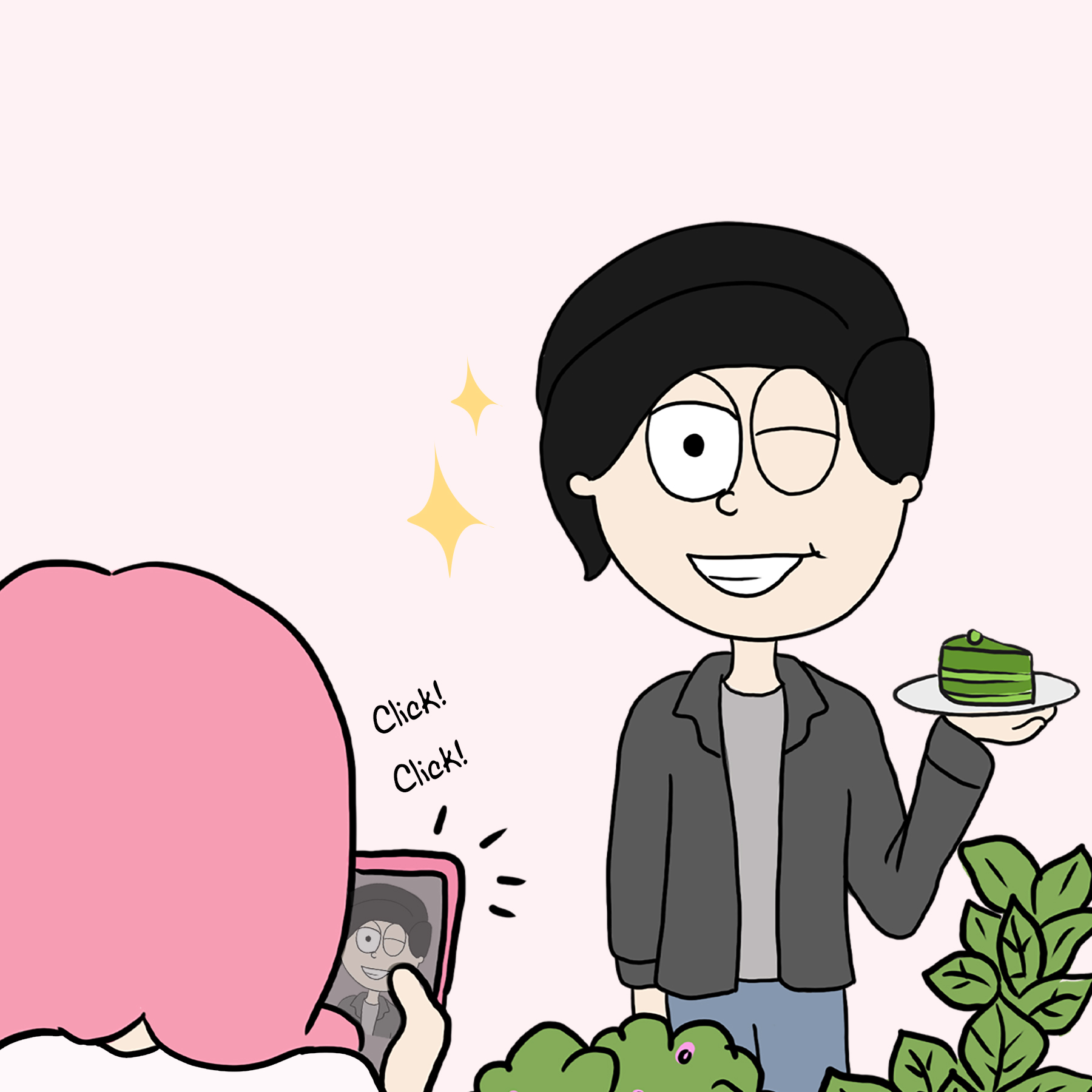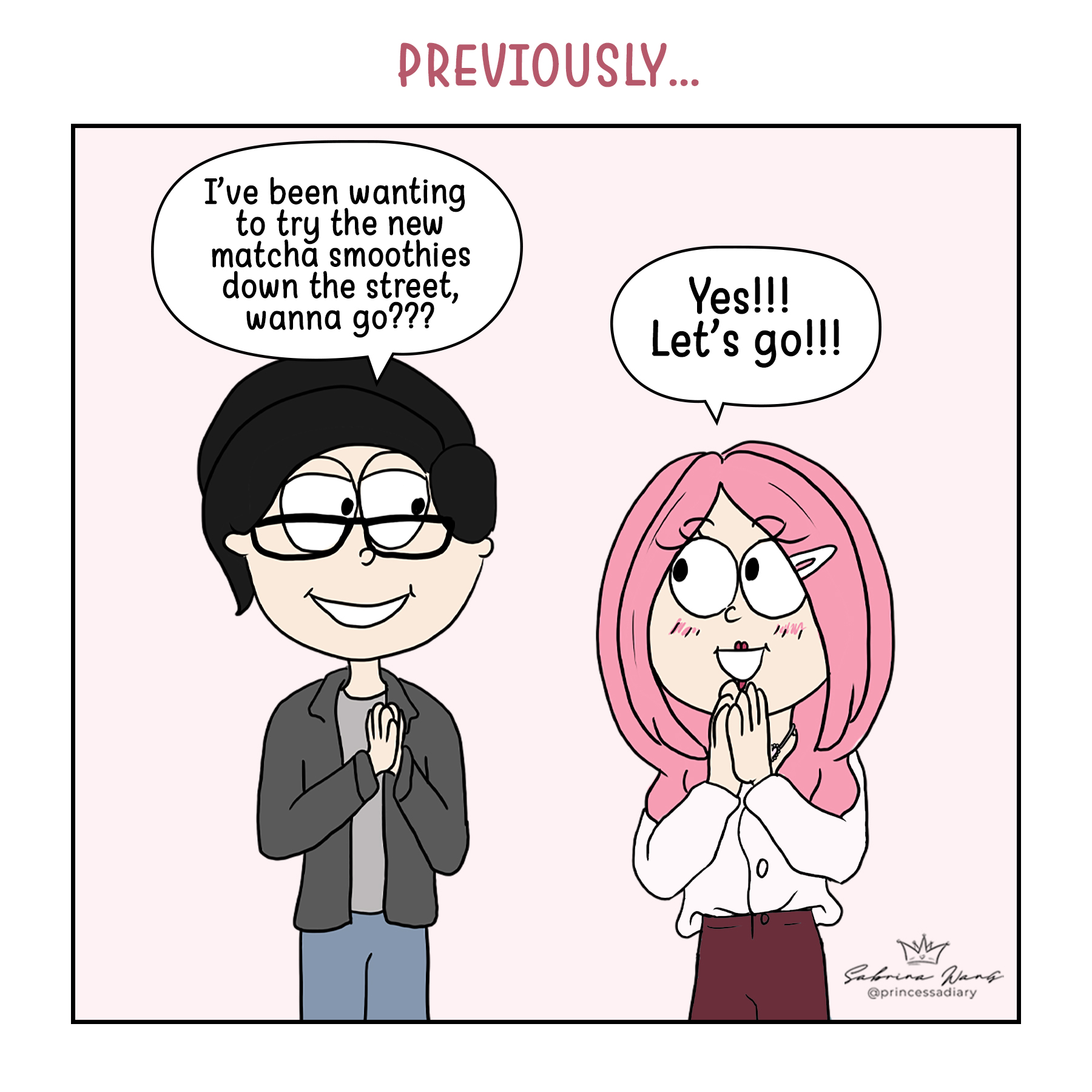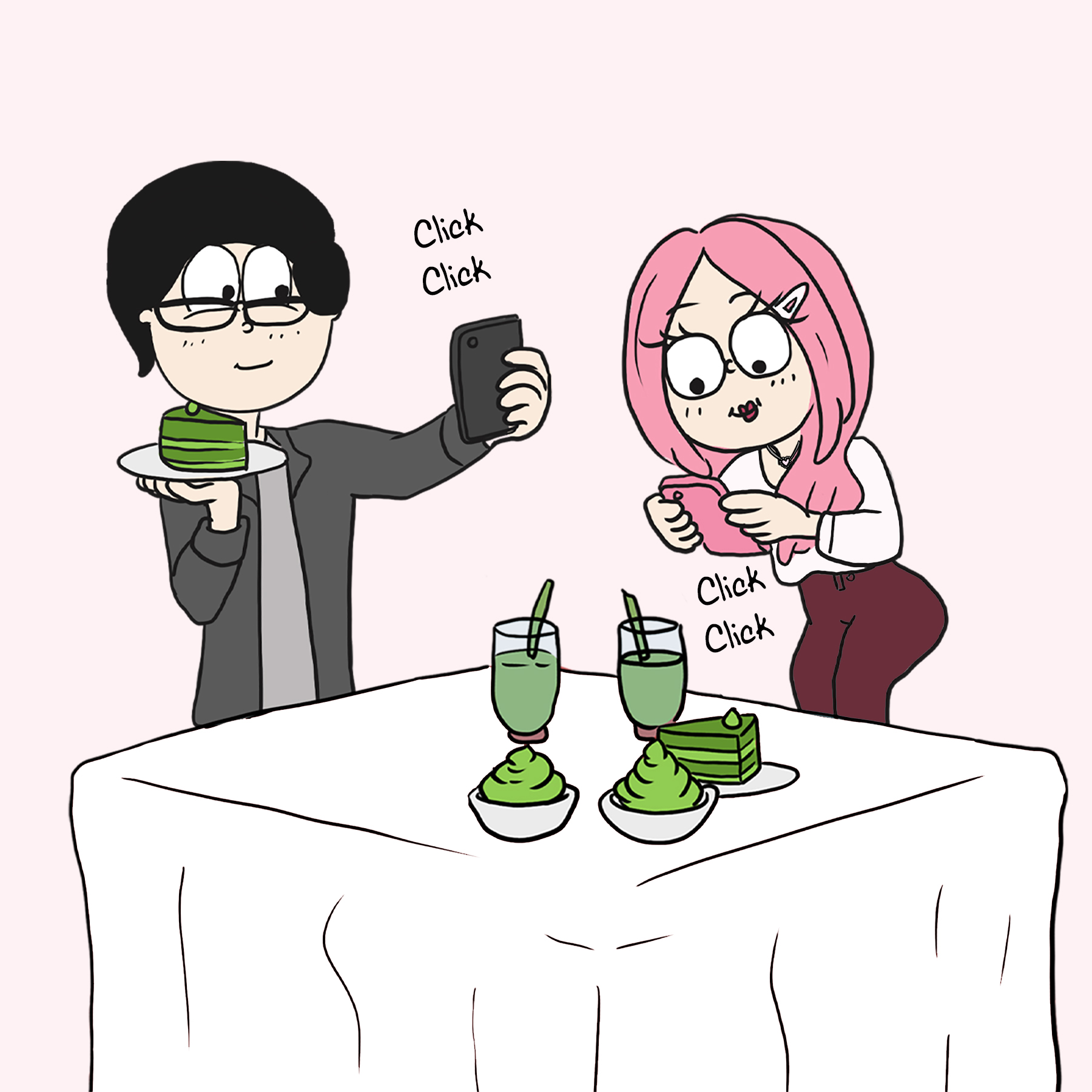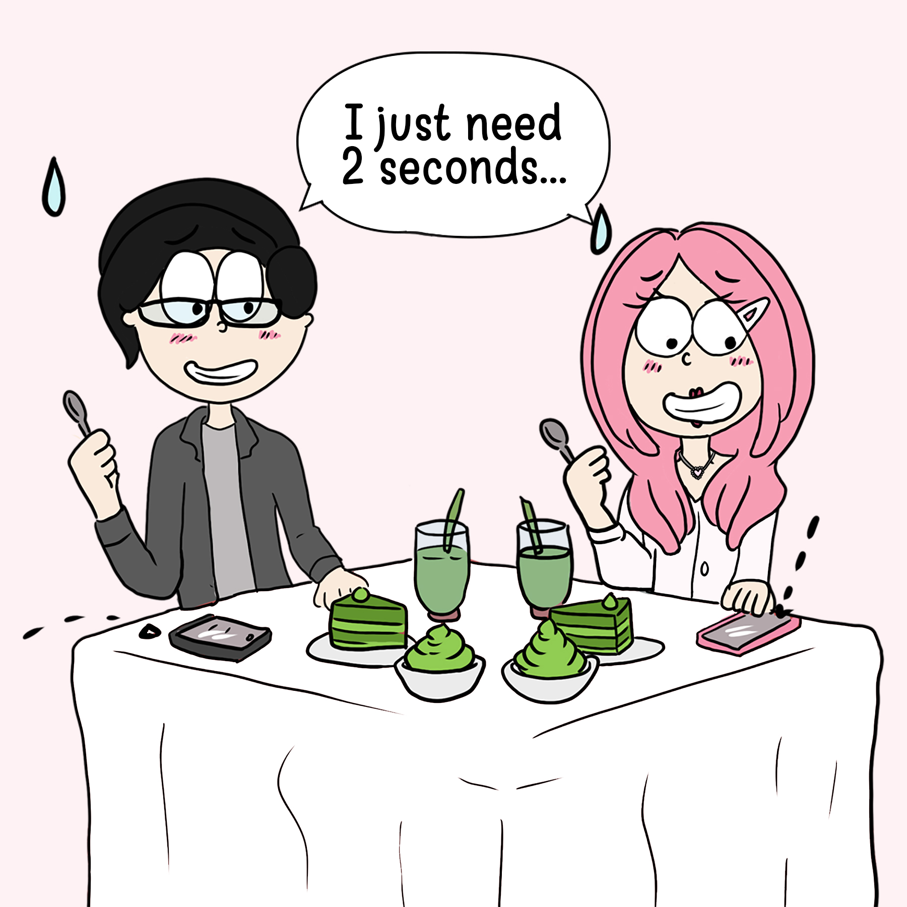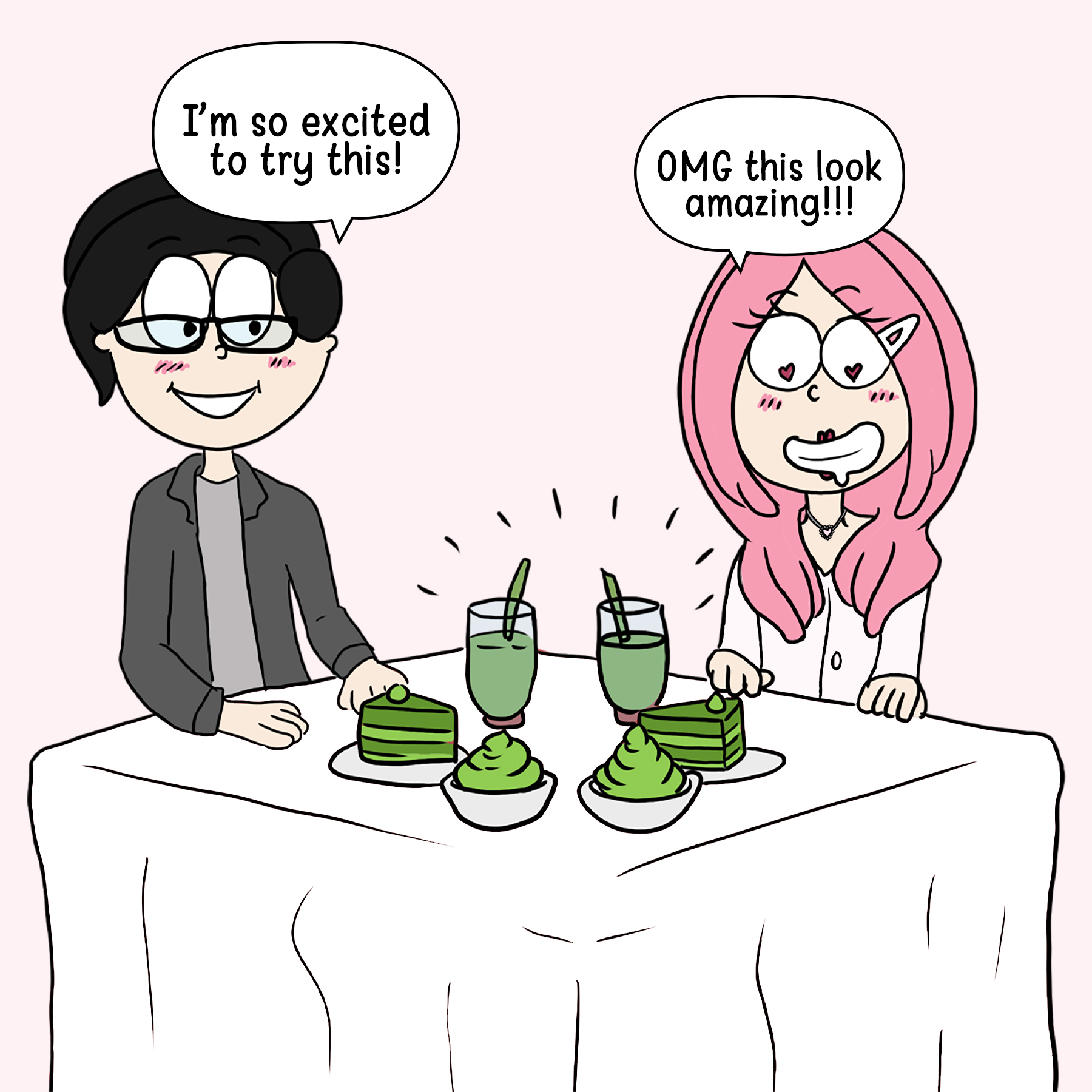So, why a comic about a matcha date, you ask? It’s simple: Ed and I are all about those little things that make us go, “We’re such a match(a)!” It’s not the big, flashy stuff that defines us, but the weird, wonderful world we create together – like geeking out over a foamy, green drink. And let’s be honest, it’s pretty hilarious seeing two grown adults get this excited over matcha, right?
