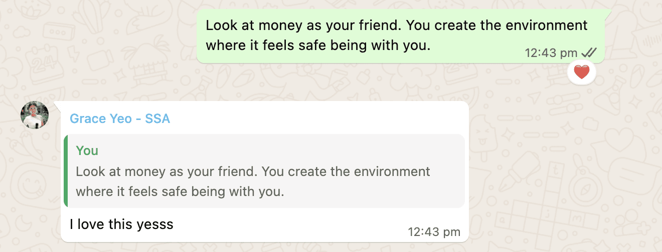 “Look at money as your friend. You create the environment where it feels safe being with you.”